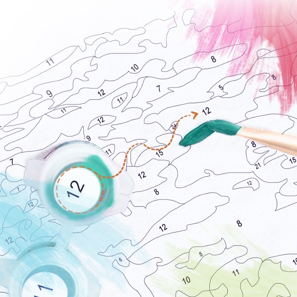 • Prémium minőségű előre nyomtatott vászon, melyen a kifestésre váró részek számokkal vannak jelölve.